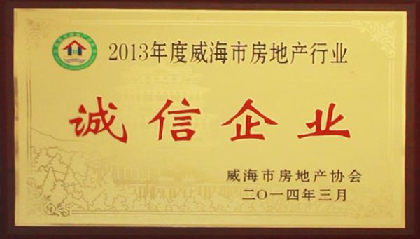 公司連續八年榮獲威海市“誠信開發企業”、“建筑施工誠信企業”,連續九年被評為威海市級“守合同重信用企業”,多次被評為威海市“市級文明單位”、“質量管理先進企業”、 “安全管理先進企業”,乳山市“優秀企業”、“先進民營企業”、“納稅明星企業”,在社會上逐步樹立了誠信、穩健的企業形象。
